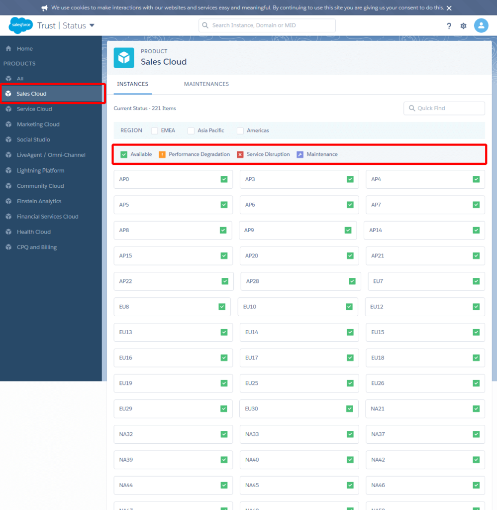 お客さまによってご利用されているサーバー(Instances)が異なります。